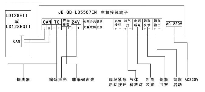 四、JB-QB-LD5507EN氣體滅火控制器接線圖